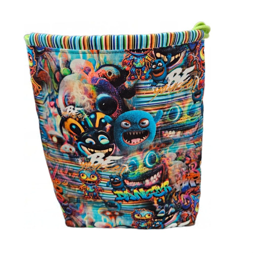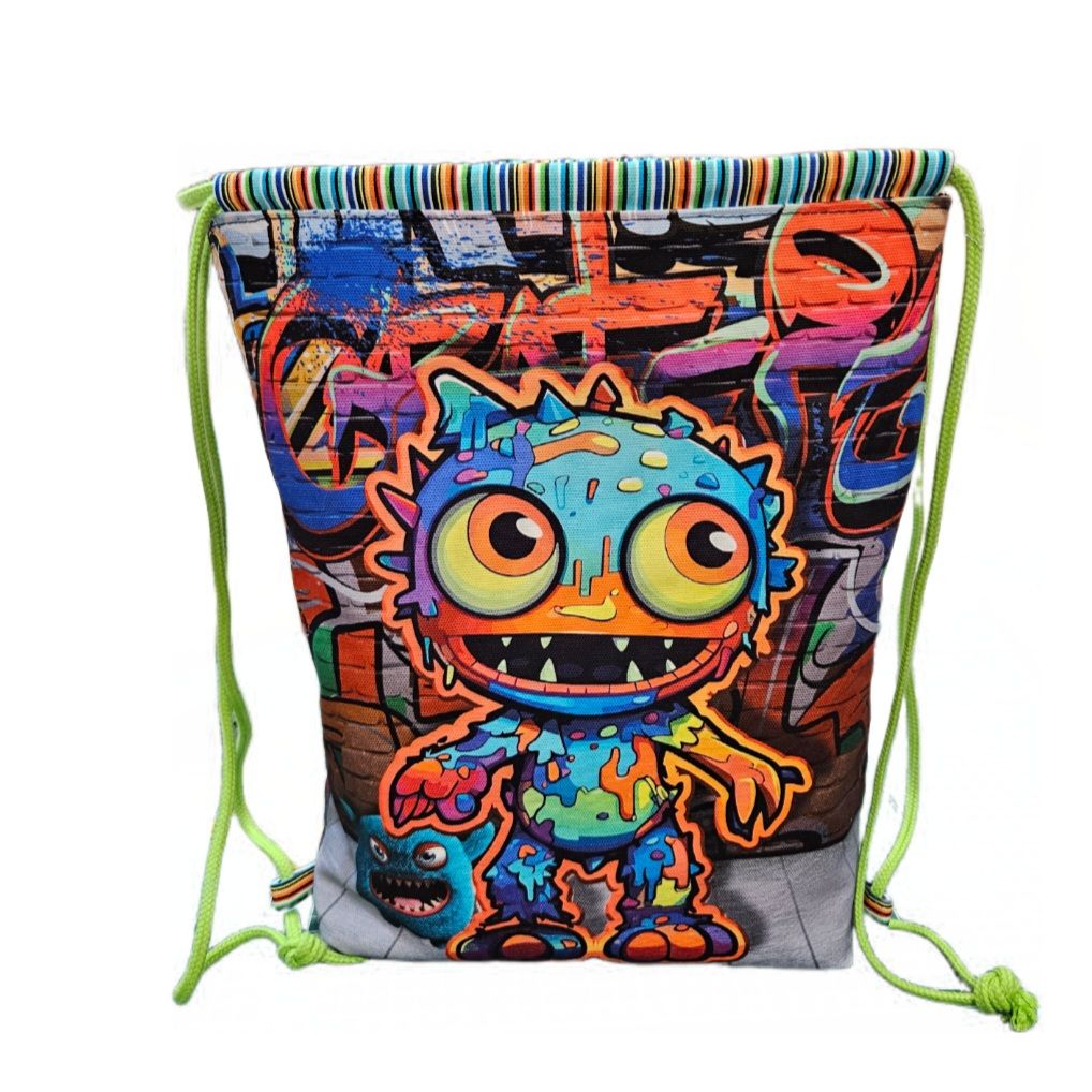 Dieser Turnbeutel zeigt verschiedene Gaffiti Monster.
